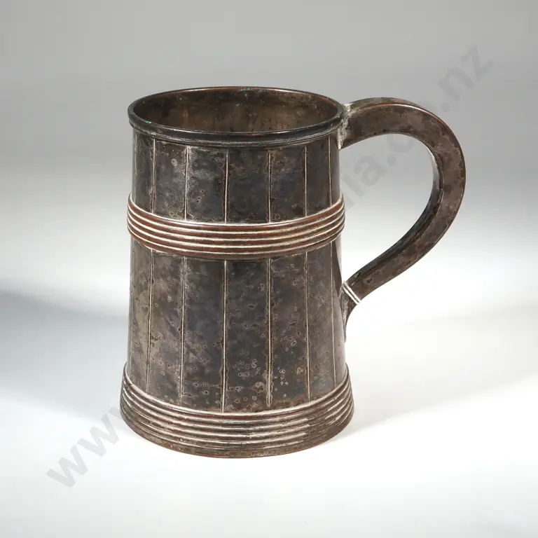 Ribbed Silver Plate Half Pint Mug With Glass Bottom