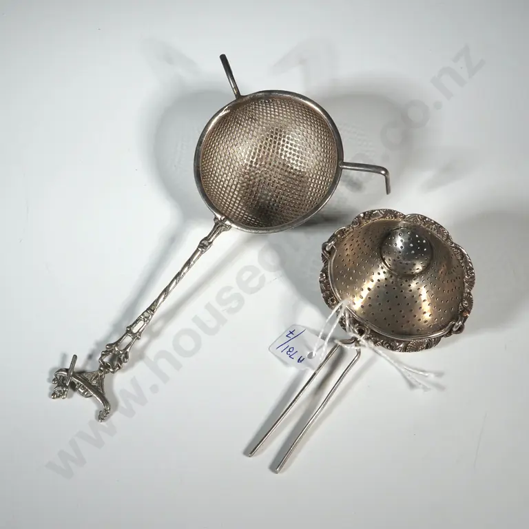 Sterling Silver Basket Style Tea Strainer. London 1804? And A Siamese Silver Tea Strainer