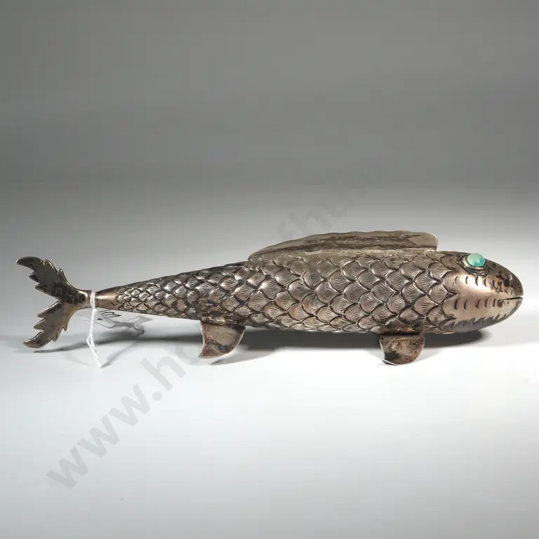 White Metal Decorative Fish Figure With Turquoise Green Eyes