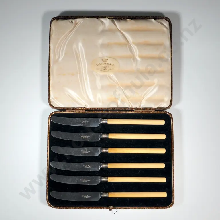 Boxed Set Of Stainless Steel & Bone Handled Fruit Knives, Retailed By Hamilton & Co. Jewellers 432 Strand,