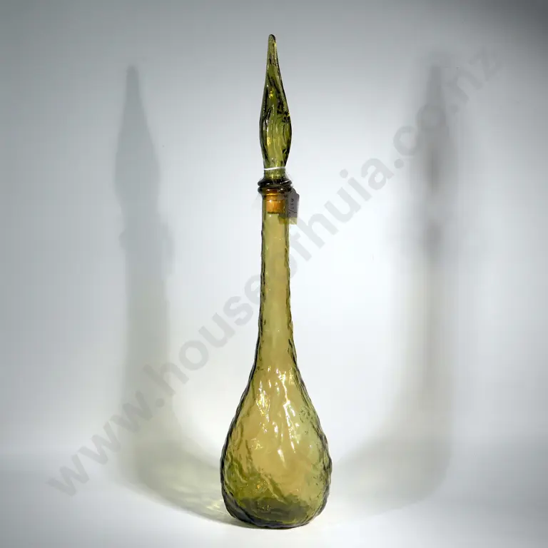 Italian Empoli Olive Green Genie Bottle With Ripple Glass & Swirl Stopper