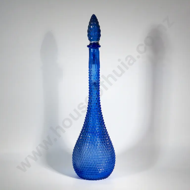 Mid Century Modern Cobalt Blue Pressed Diamond Glass Decanter With Stopper