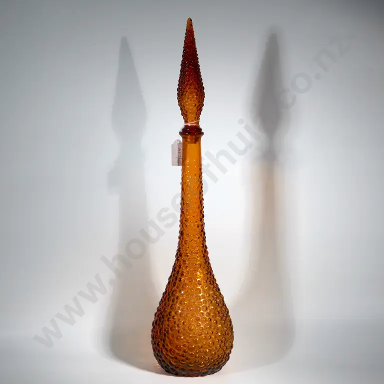 Vintage Italian Empoli Genie Bottle Amber Hobnail Glass Decanter & Stopper