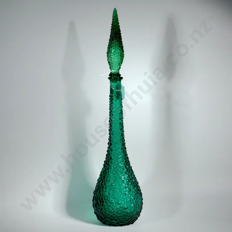 Empoli Italian Vintage Green Hobnail Glass Decanter Genie Bottle & Stopper