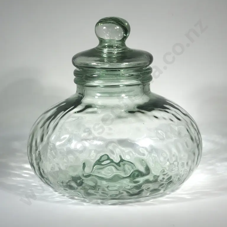 Large Spanish Green Glass Apothecary Jar. Recycled Dimpled Glass Body.