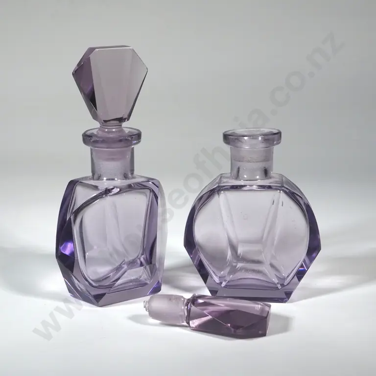 Pair of Vintage Czech Amethyst Glass Perfume Bottles