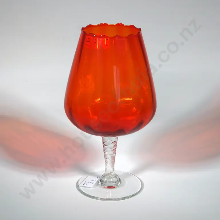 Vintage Ruffled Edge Orange Murano Empoli Art Glass - Brandy Balloon.