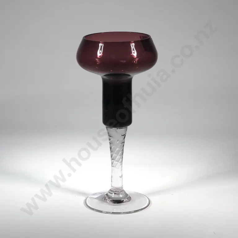 Vintage Italian Art Glass - Amythest Purple/Clear Glass Candle Holder.