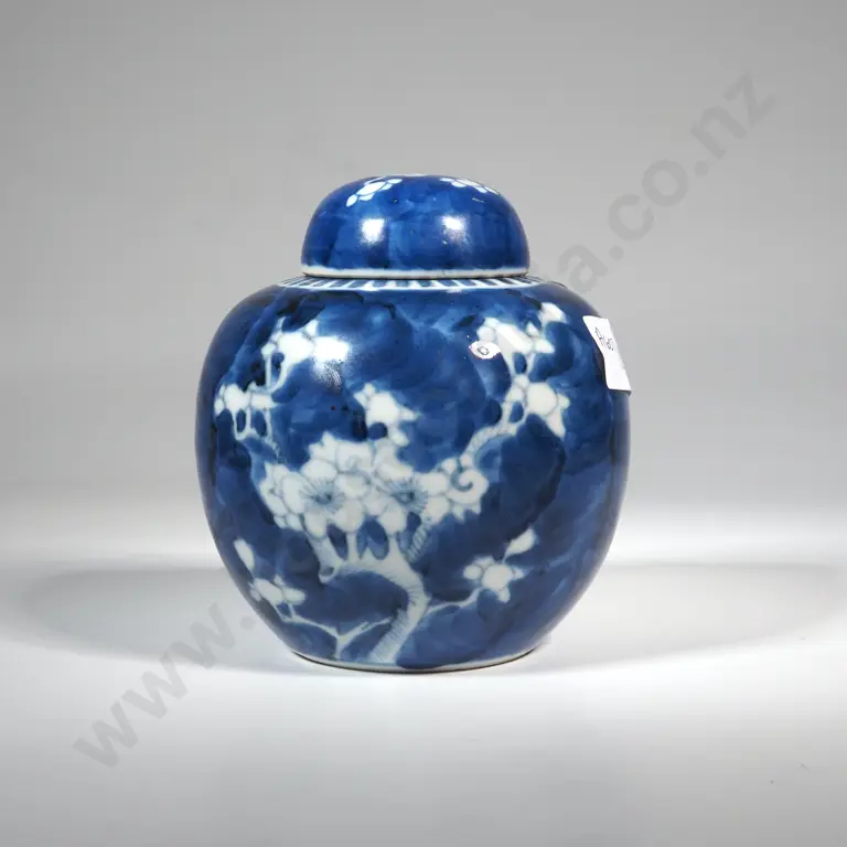 Blue & White Ginger Jar With Apple Blossom Decoration