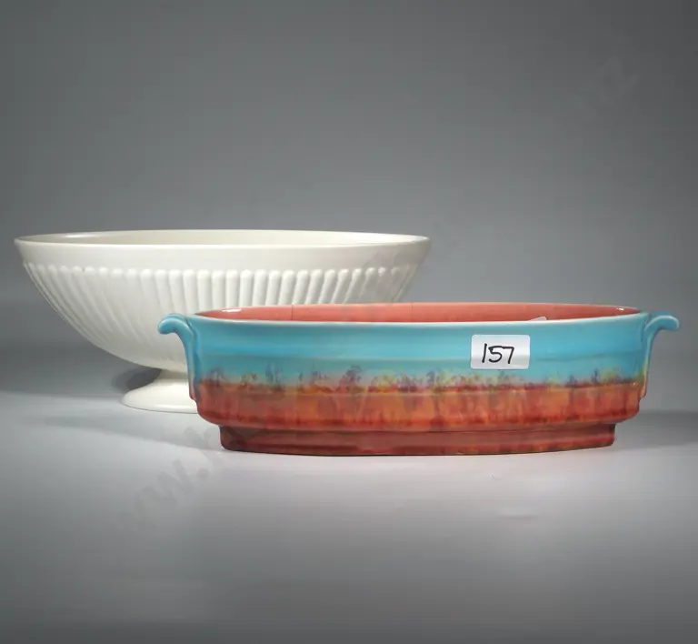 Crown Ducal Ribbed Trough Vase (a/f) & A Wedgwood White Ribbed Trough Vase
