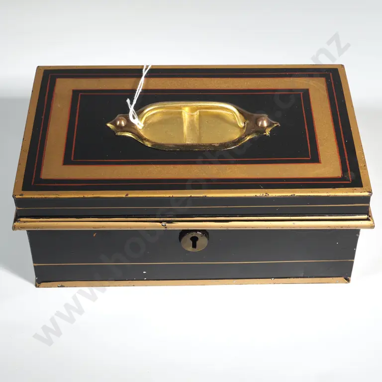 Large English Metal Cash Box with Handle.
