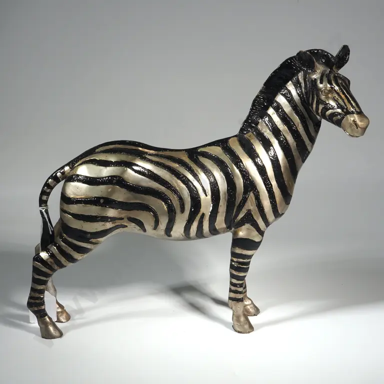 Modern Statuary Bronze Silver Finish Zebra Sculpture