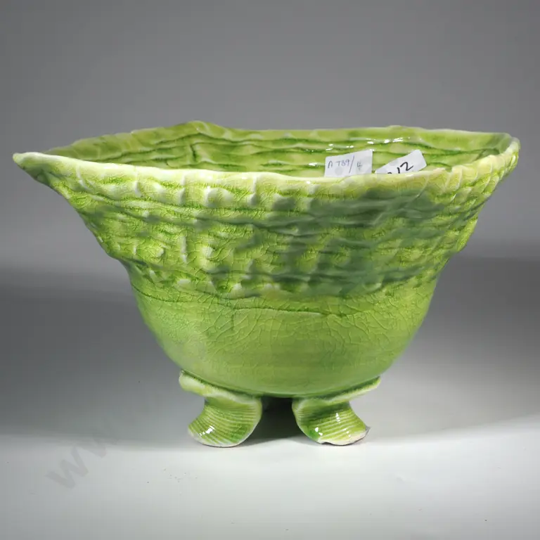 Large Victorian Triangular China Cheese Keep. Embossed Gold Decoration On A Cream Ground & With The Word "Cheese"