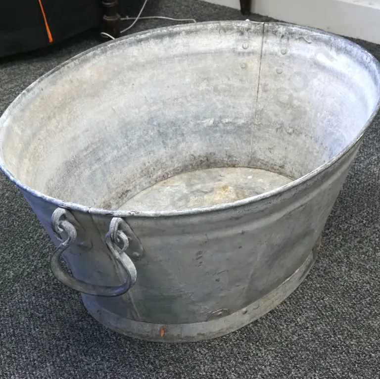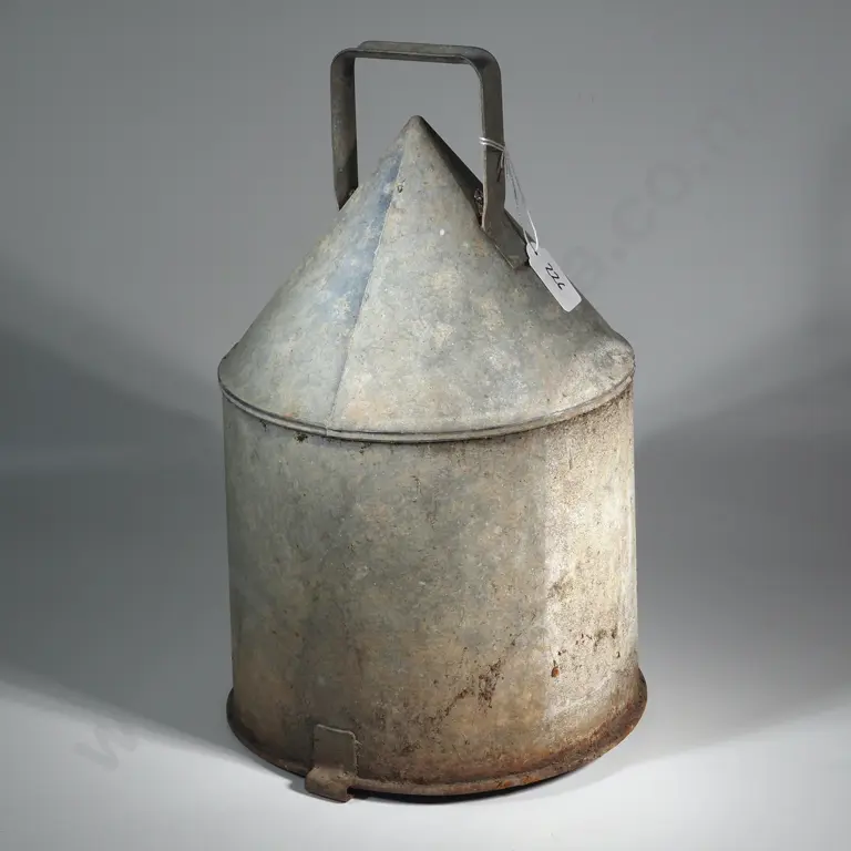 Vintage Grey Metal Eltex Poultry Feeder & Large Brown Enamel Tea Kettle.