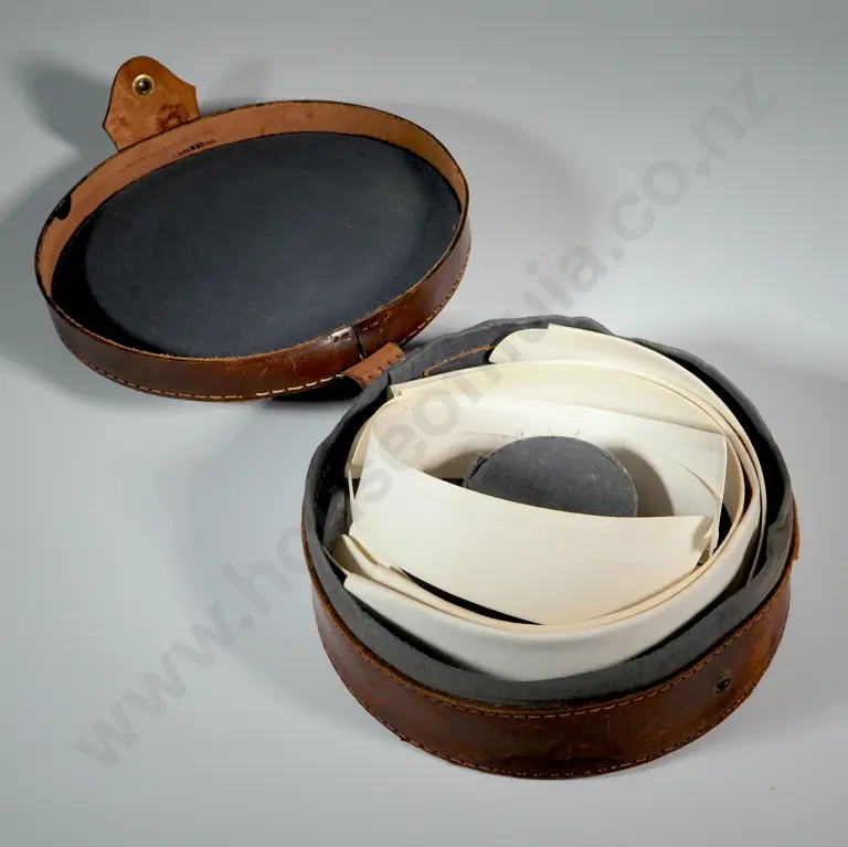 Circular Leather Collar Box Complete with Collars & Marked "Collars" in Gilt Lettering