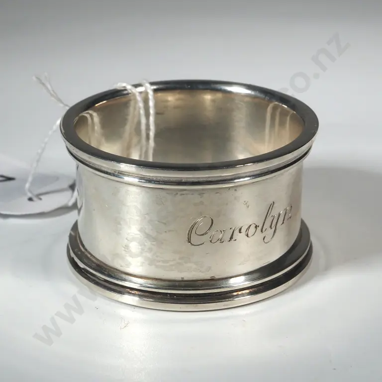 Sterling Silver Serviette Ring with Plain Body & Inscribed "Carolyn". London 1946