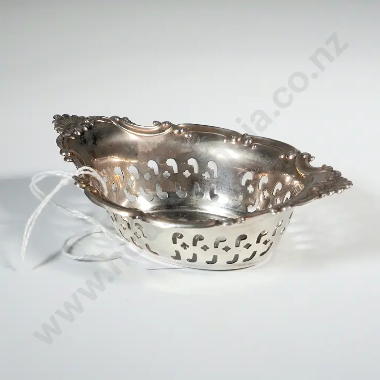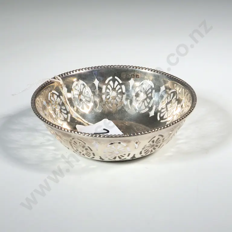 Sterling Silver Small Circular Bowl With Beaded Rim & Pierced Decoration. Maker Charles Green. Birm 1925
