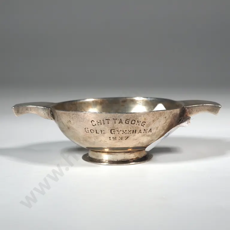 Sterling Silver Miniature Quaiche Or Salt. Inscribed Chittagong Golf Gymkhana 1937