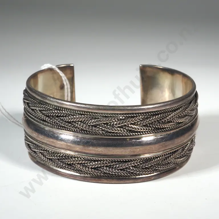 Sterling Silver Cuff Bracelet with Plaited Decoration.