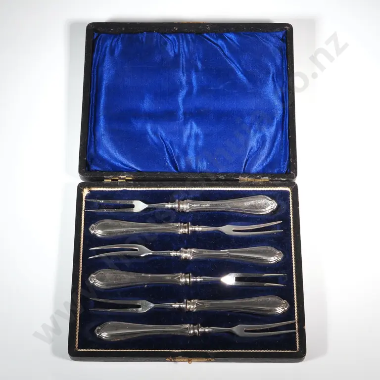 Box Set Of Six Sterling Silver Fruit Or Dessert Forks. Sheffield 1906