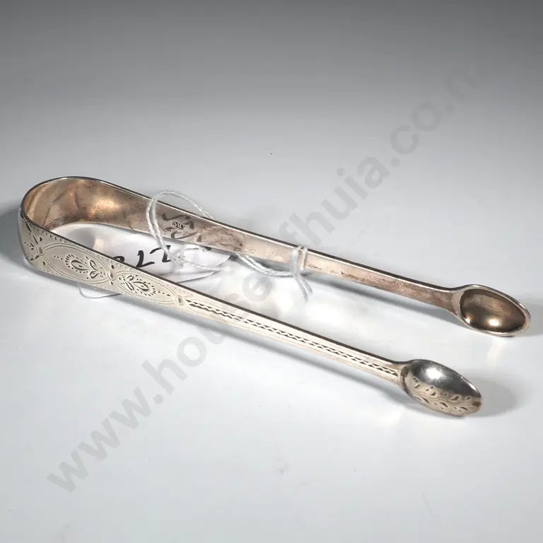 Sterling Silver Bright Cut Sugar Tongs. Georgian