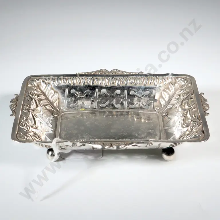 Sterling Silver Pierced Bon Bon Dish Of Rectangular Form