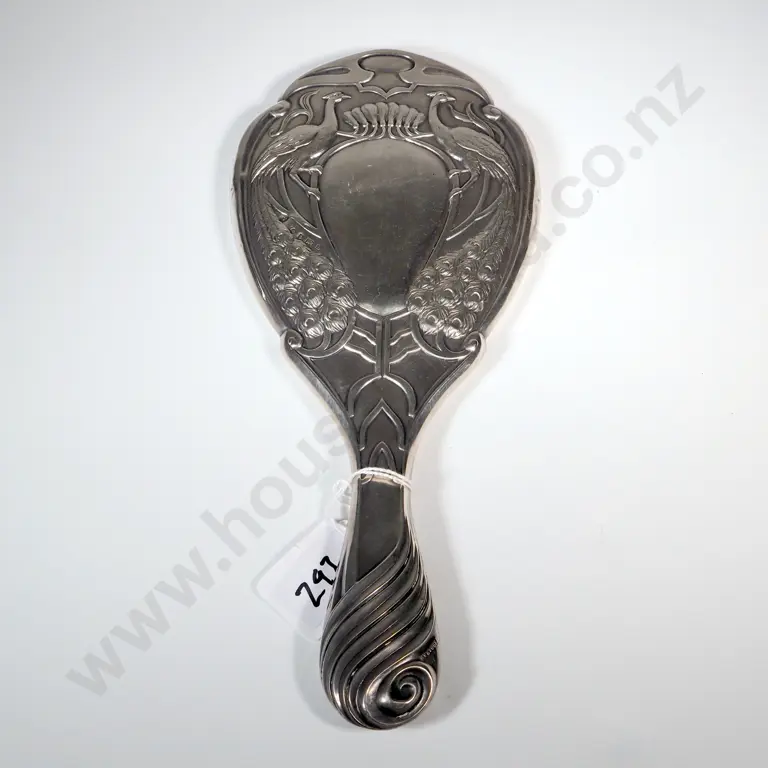 Sterling Silver Hand Mirror Decorated With Embossed Peacocks In The Art Nouveau Style. Birm 1901