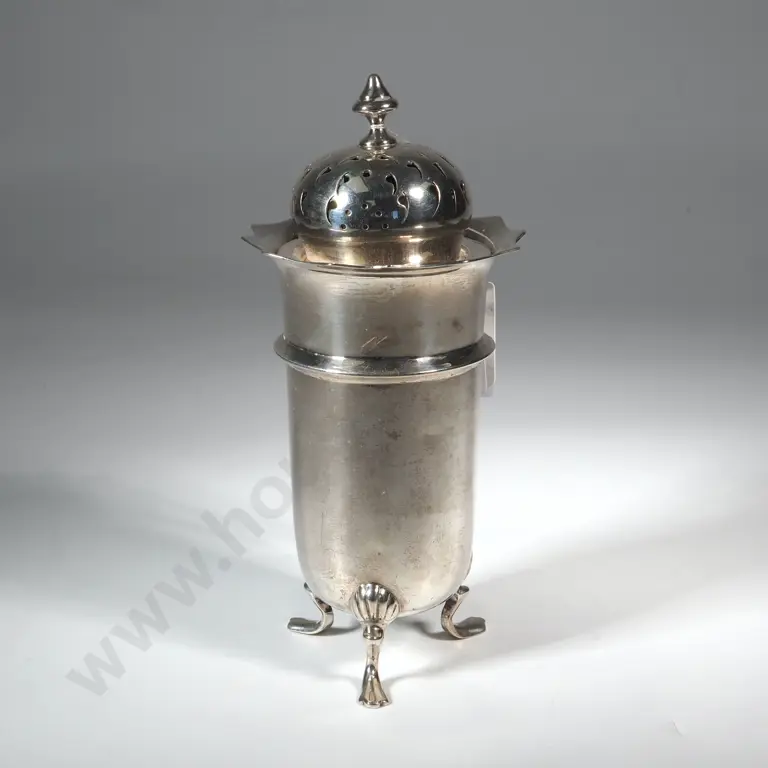 Sterling Silver Sugar Sifter On Three Pad Feet. Birm 1908. Maker Deakin & Francis Ltd.