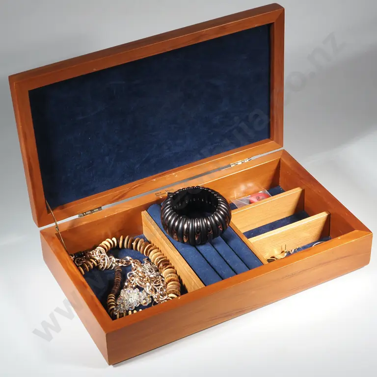 Oriental Style Wooden Jewellery Box w Jade Inset