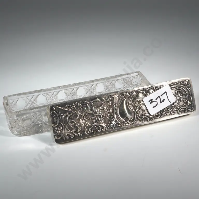 Hobnail Glass Sterling Silver Lidded Container - Silver Weight 28.63 Grams