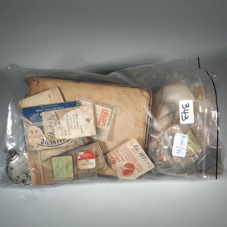 Bag Containing A Large Collection Of Watch Part -Mainsprings, Watch Glass, Face Parts, Replacement Parts