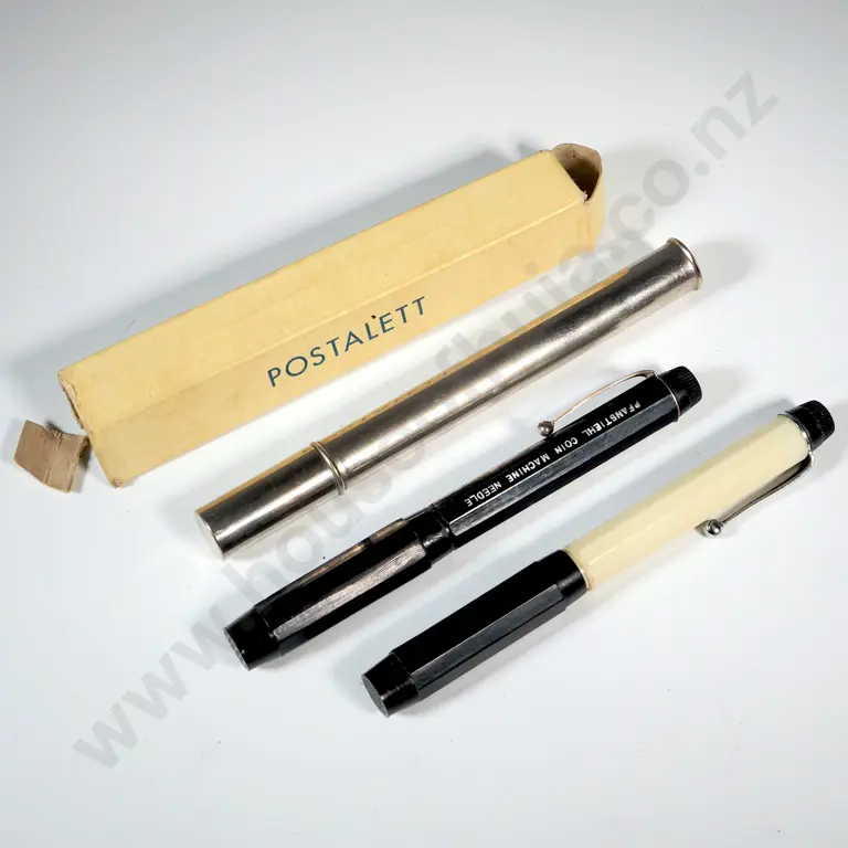 Schaeffer Fountain Pen & Two Others, Small Vintage Box For Nibs, Portable Ivorex Mirror, Letter Opener & Pipe Tool