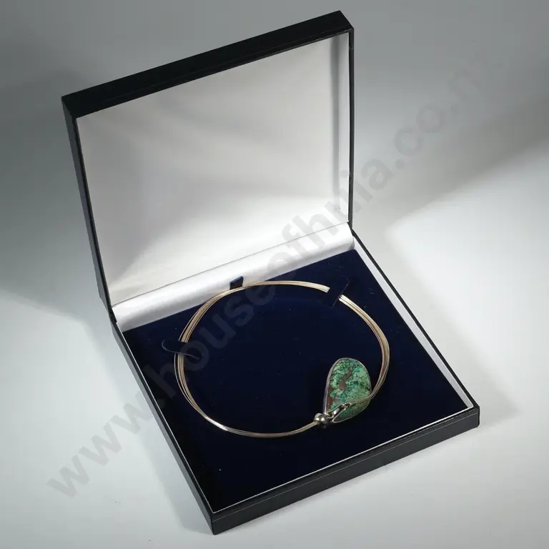 Boxed Sterling Silver Choker & Turquoise Pendant