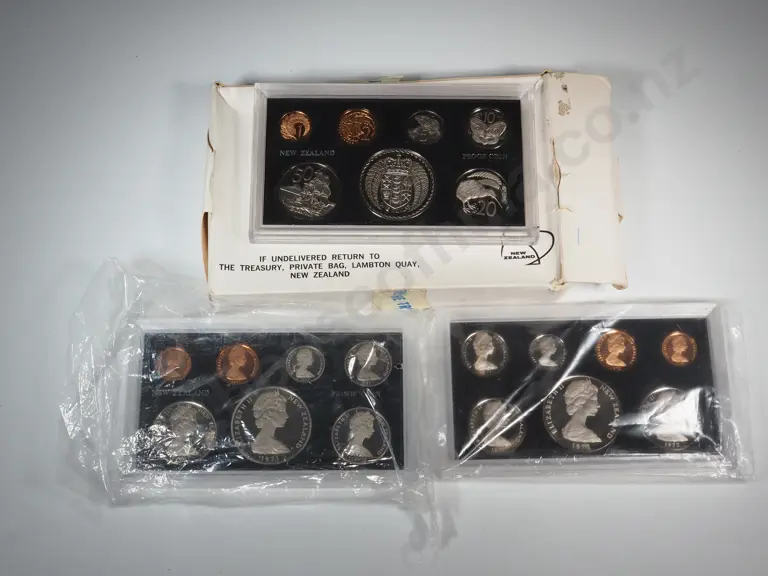 Three New Zealand Proof Sets w Silver Dollar Coins