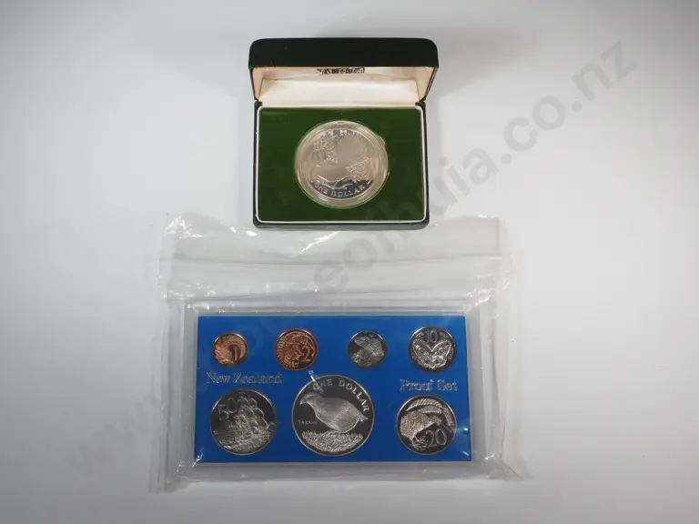 New Zealand Proof Set w Silver Dollar & Cased Silver Dollar