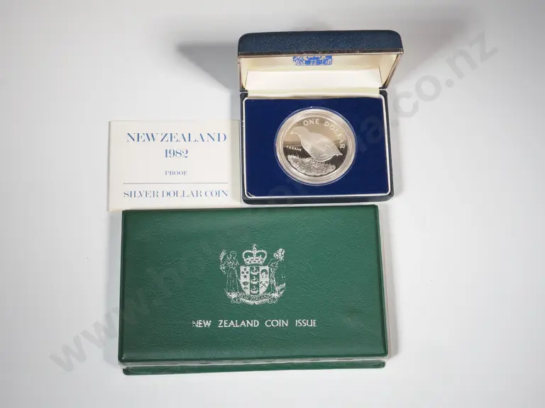1982 New Zealand Proof Set w Sterling Silver Dollar & Cased 1980 Proof Silver Dollar