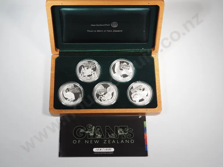 2009Giants of New Zealand Cased Coin Set 5 Ounces of Pure Silver