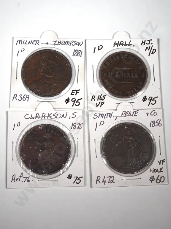 Four Carded New Zealand Trade Tokens