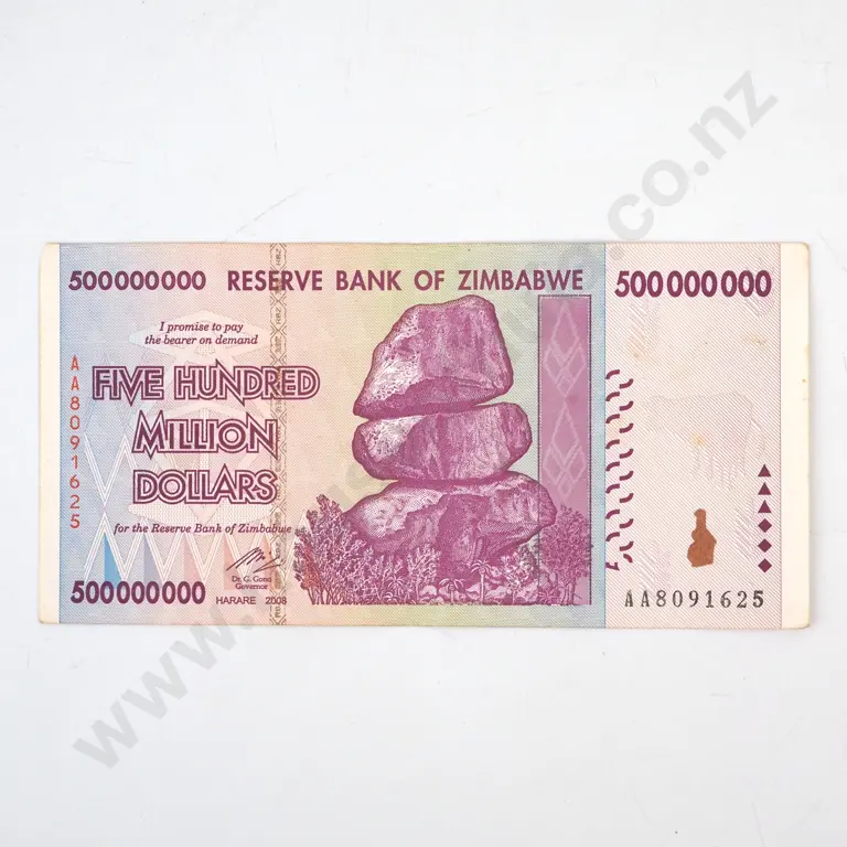 Zimbabwe Five Hundred Million Dollar Banknote
