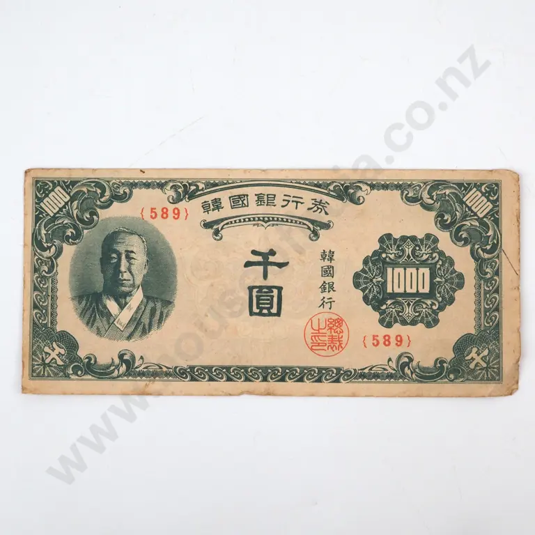 Vintage Korea Thousand Won Banknote