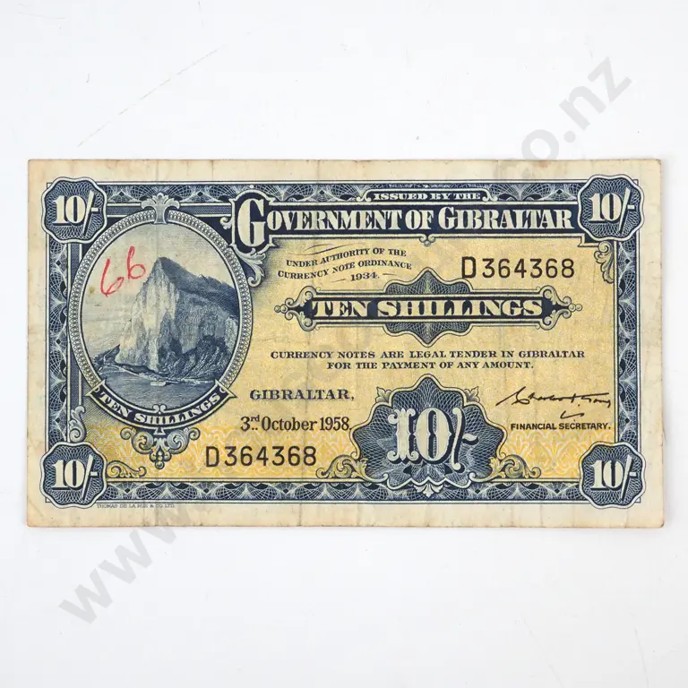 1958 Gibraltar 10 Shilling Banknote