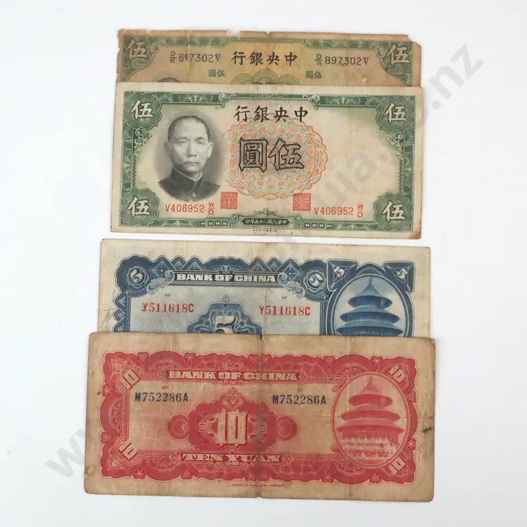 Four Chinese Pre 1940 Chang Kai Shek Chinese Banknotes
