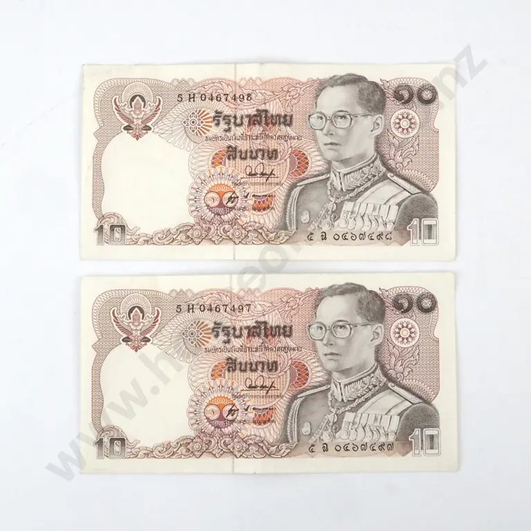 Two Consecutive 10 Thai 10 Baht Banknotes