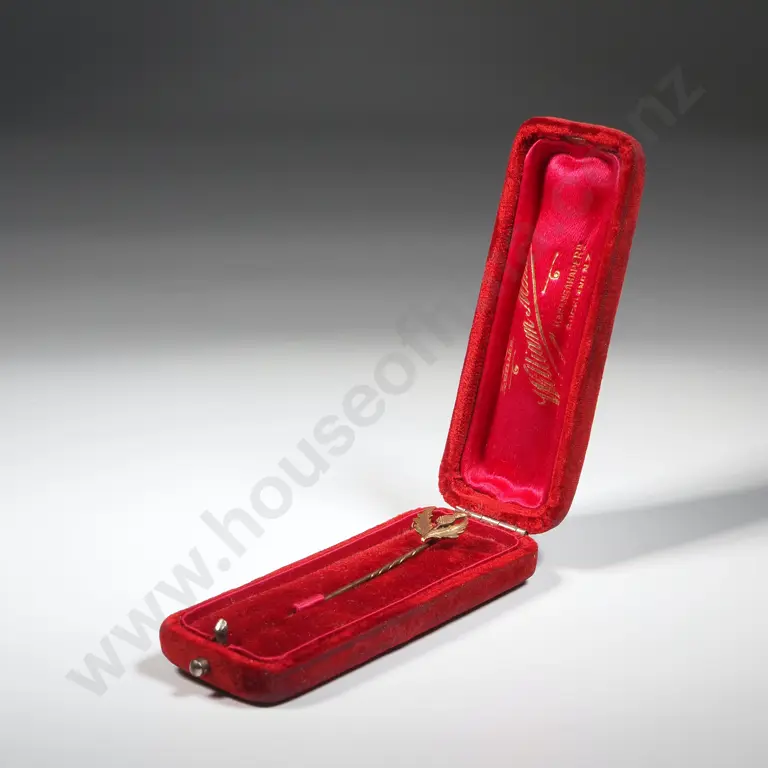 Antique 15ct Gold Thistle Stick Pin in Period NZ Jewellers Box
