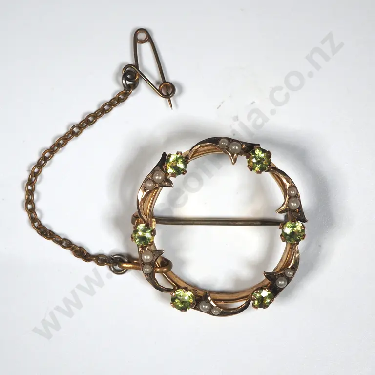 9ct Gold Edwardian Peridot & Seed Pearl Brooch Estimate: $300 - $400