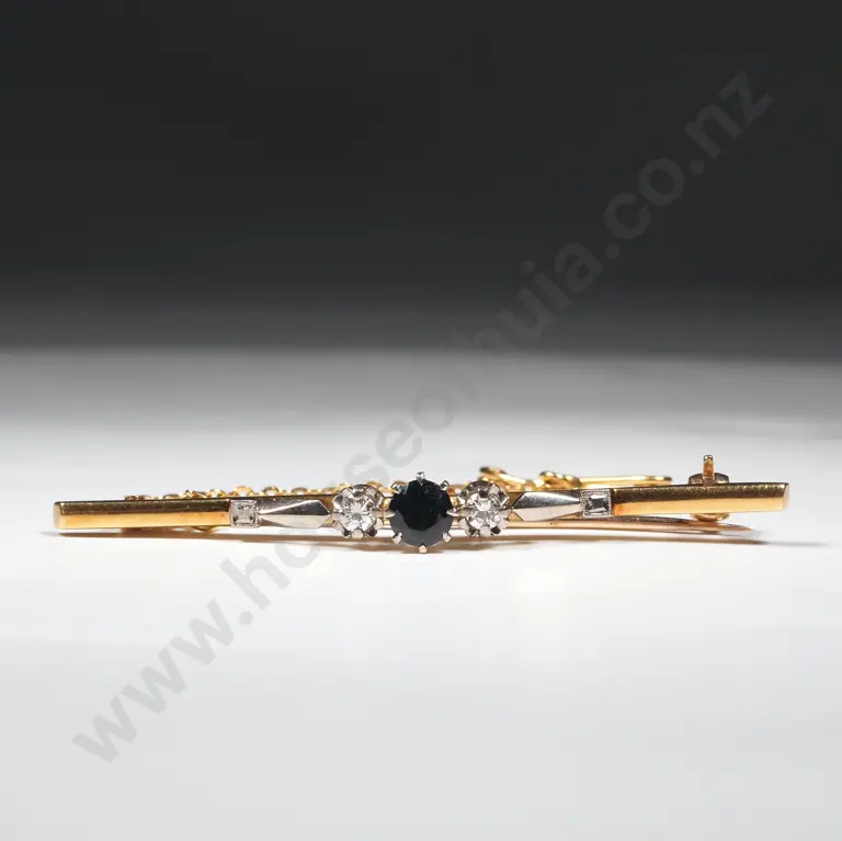 18ct gold Sapphire & Diamond Bar Brooch Estimate: $800 - $1,200