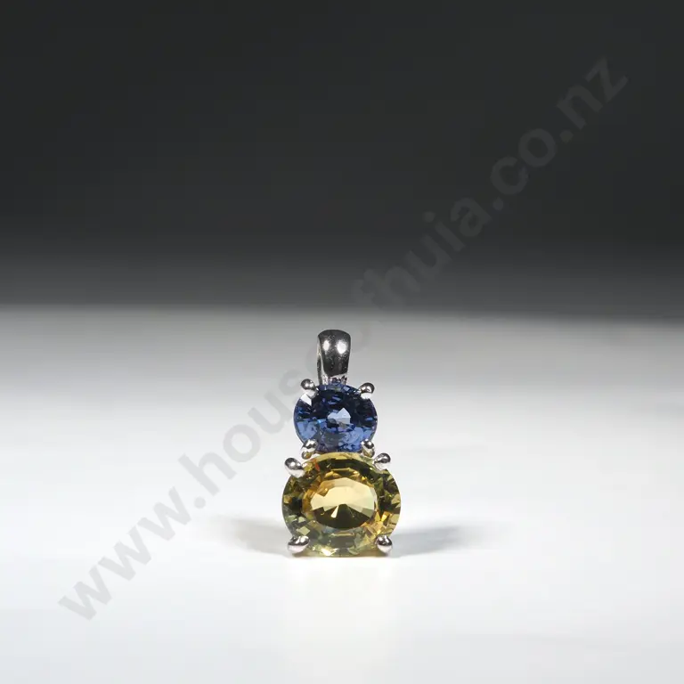 14ct White Gold Pendant w Blue & Green Sapphires
