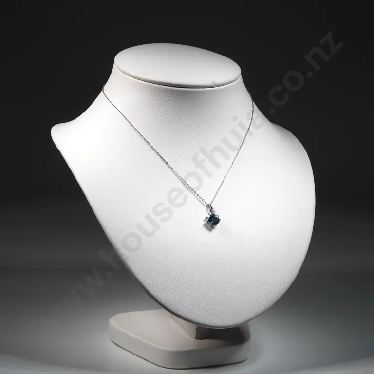 9ct Gold Sapphire & Aquamarine Pendant on 9ct Gold White Gold Chain Estimate: $250 - $300