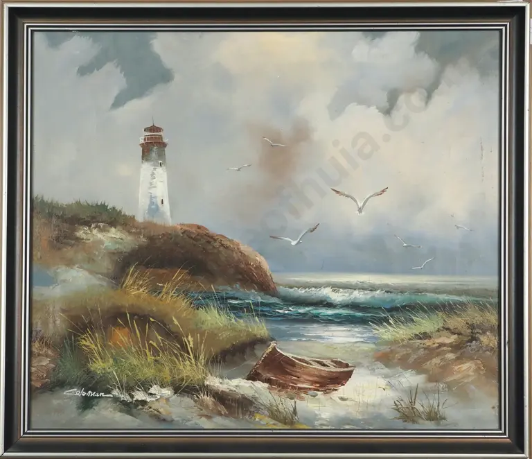 Coleman. Landscape - Coastal Scene With Lighthouse. Oil On Board.