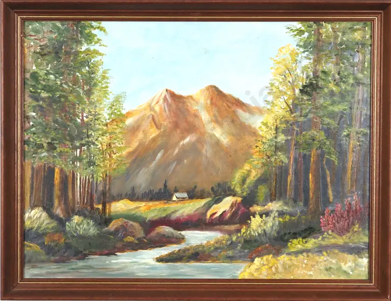 L. A. Brown. 1989. Cottage In The Mountains. Oil On Board.